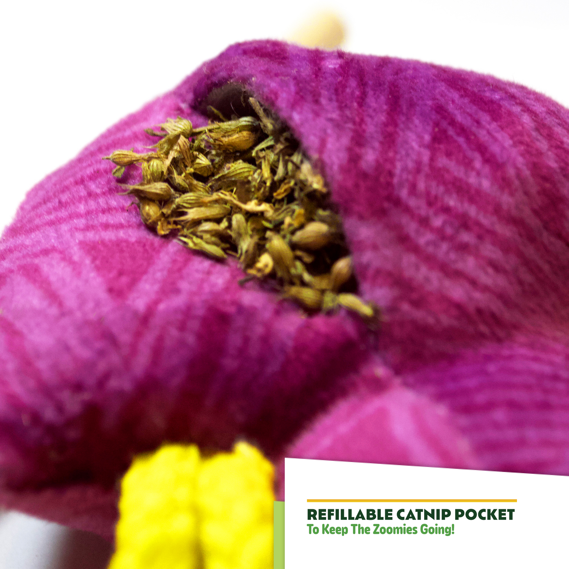 Get ready for creepy-cute chaos with the Kitty Ka-Zoom™ Zoomie Spider with Wand! This CRAZY GOOD refillable catnip toy is designed for wild wand-flinging fun that keeps your kitty leaping, batting, and zooming all over the house. With a soft plush spider body, wiggly yellow legs, and a sturdy wand for interactive play, this toy brings on the BOING and the BOUNCE. Comes with .18oz (.5g) of purr-worthy catnip grown in Canada & the USA. Just load it up, wave the wand, and watch your cat go KA-ZOOM!